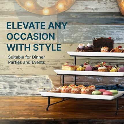 Gracious Dining Dinnerware, 3-Tier Rectangle Plate Set with Metal Stand, White