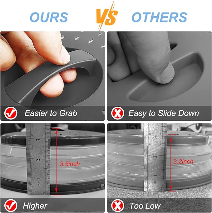 • 【Easy To Grid】LekDrok Microwave Lid is designed by a Easy-Grid-Handle. It is easy to fetch the cover out of microwave without burning hands compared to others grid-handle which is short and easy to slip.