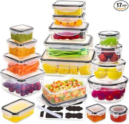 34 PCS Food Storage Containers Set with Airtight Lids (17 Lids &17 Containers) – BPA-Free Plastic Food Container for Kitchen Storage Organization