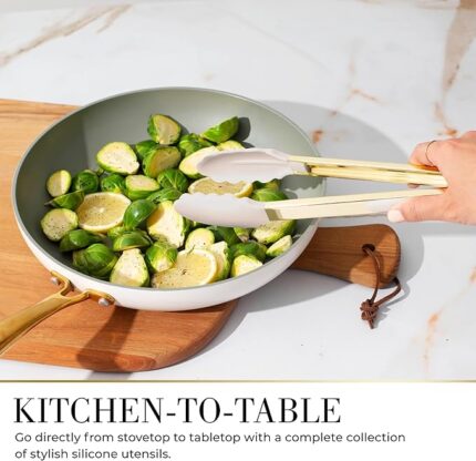7-Piece Beige & Gold Kitchen Utensils Set – Non-Toxic Silicone & Stainless Steel Tools for Cooking, Serving