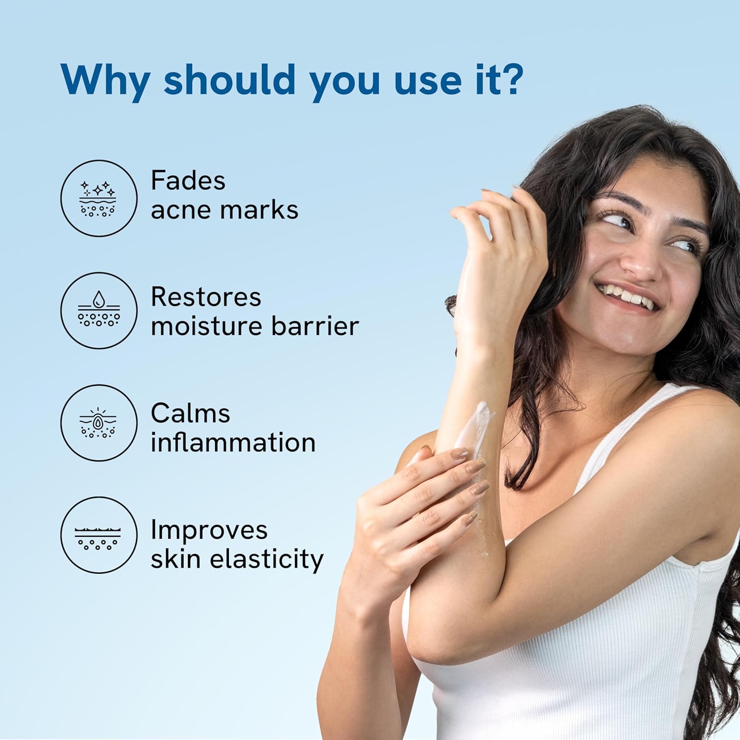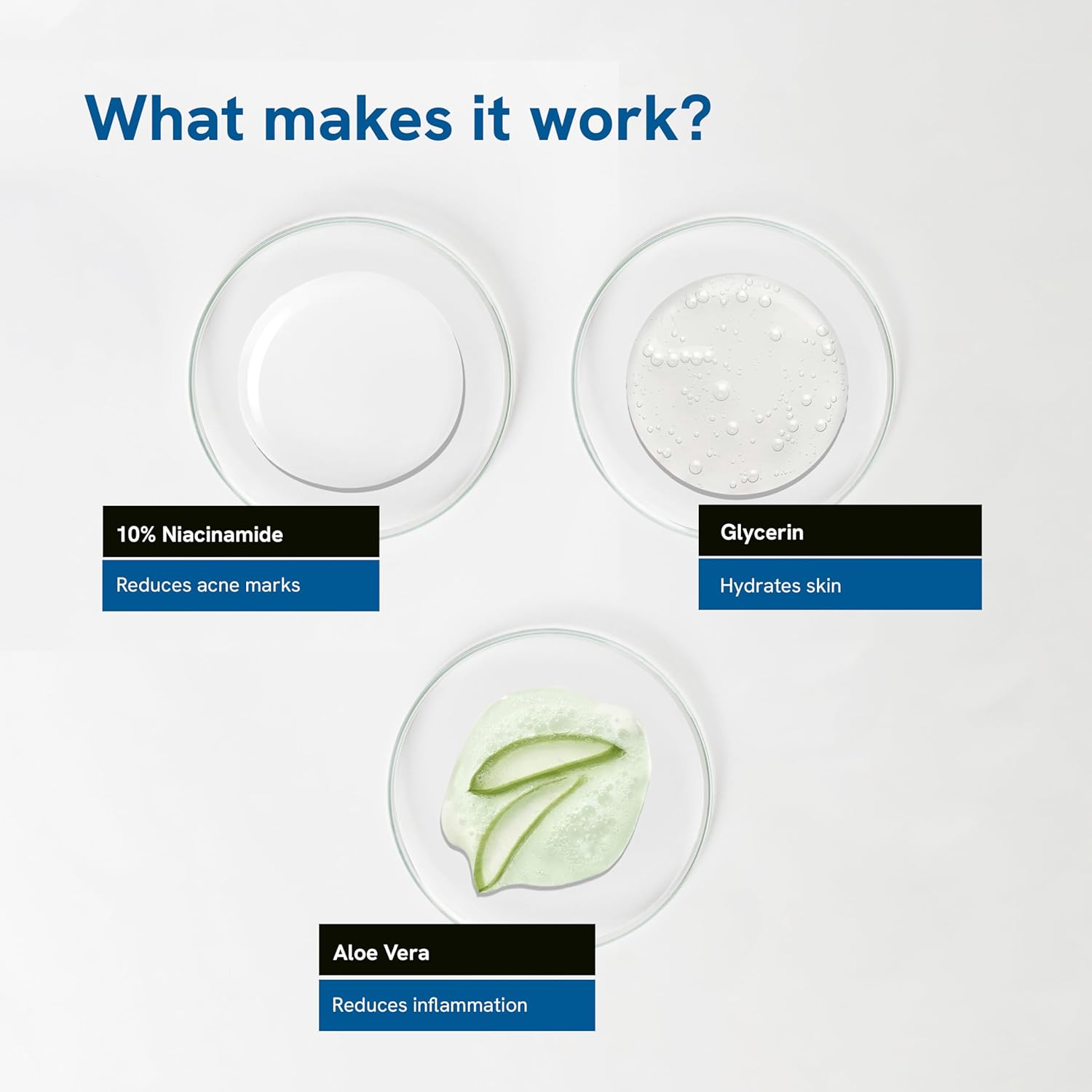 1.10% Niacinamide – A multi-functional skincare superstar with several proven benefits for the skin – Fades brown spots alone or in combination with amino sugar, acetyl glucosamine – Can help to improve several skin conditions including acne, hyperpigmentation. 2.Aloe Vera Extract – Helps in binding moisture into the skin – Has cohesive effects on the superficial flaking epidermal cells by sticking them together, which softens the skin. 3.Repairs moisture barrier: Niacinamide & aloe assist in keeping the natural barrier of the skin healthy & repairing compromised barrier 4.Reduces acne marks & blemishes: 10% Niacinamide suppresses melanin transfer to reduce the appearance of marks gradually 5.Nourishes skin: Made with a combination of different emollients & humectants, this lotion keeps the skin supple and healthy