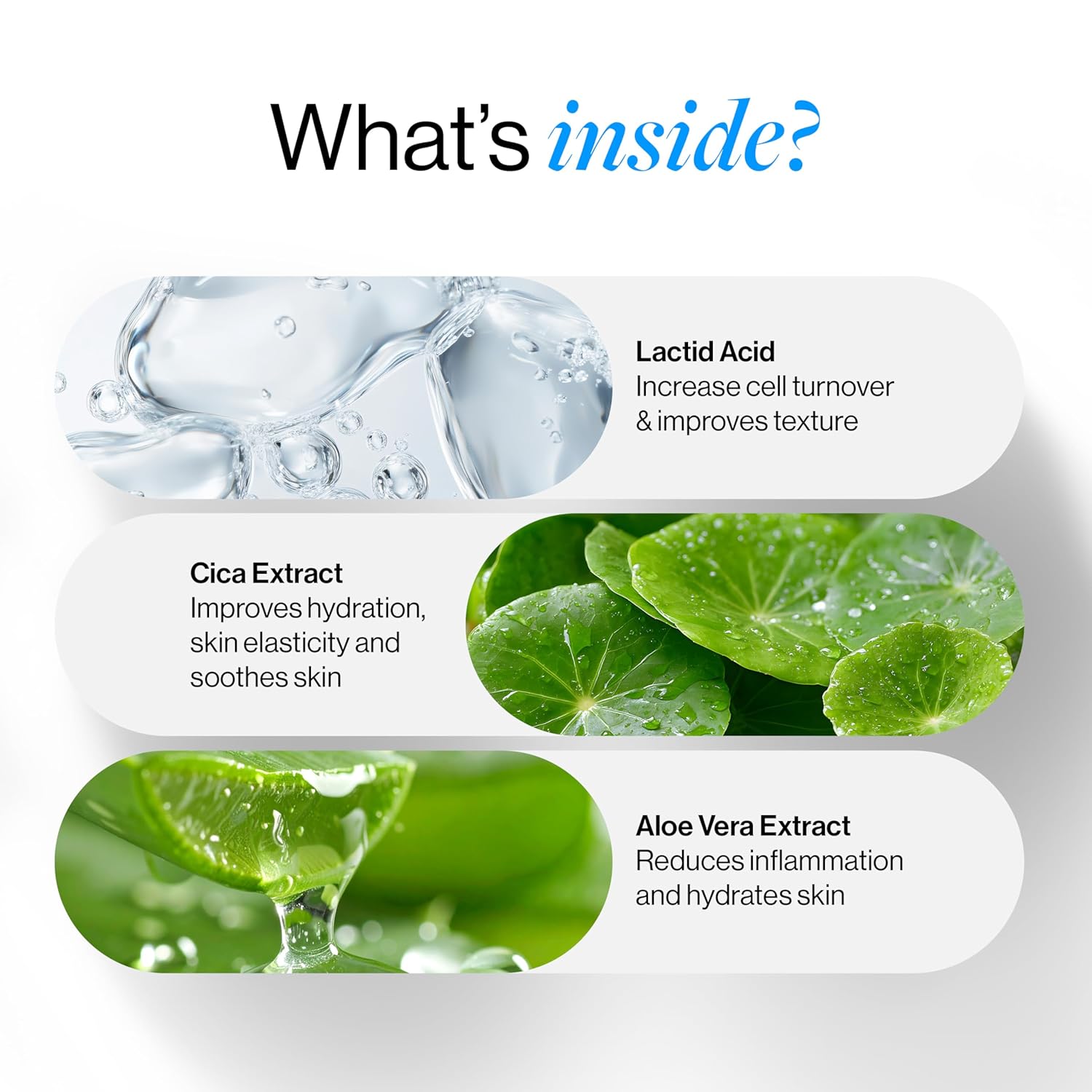 - Nourishes skin: Enriched with Cica Extract and Aloe Vera, the lotion hydrates skin and improves the skin elasticity to make your skin look supple; Helps Exfoliating Skin: Lactic acid helps with gentle exfoliation and the moisturizing agents nourish skin.
