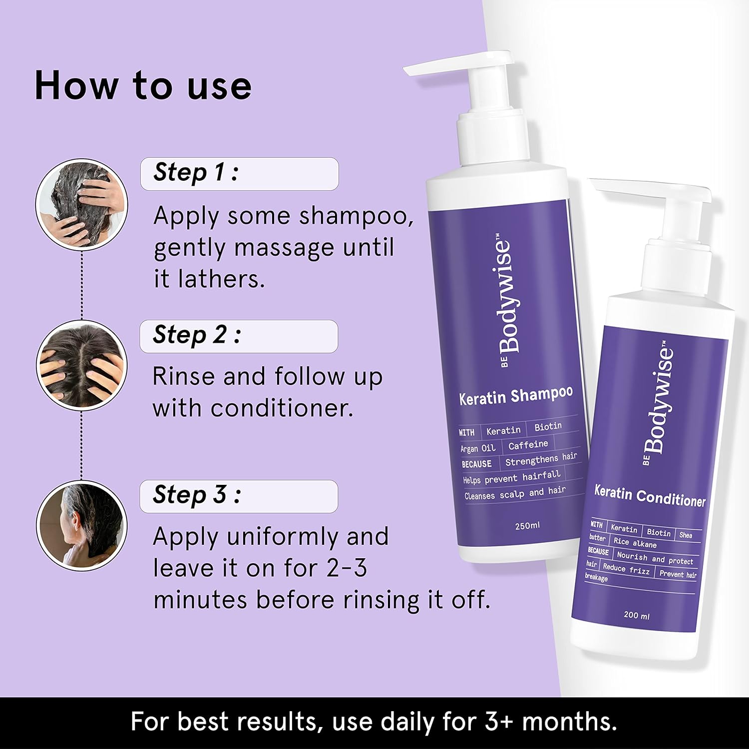 • NO MORE HAIR DOWN THE DRAIN | Bodywise Anti Hair Fall Shampoo ensures your hair stays where it’s supposed to. Its Keratin-infused formula strengthens strands, minimizes breakage & adds volume to your locks.