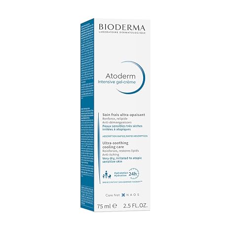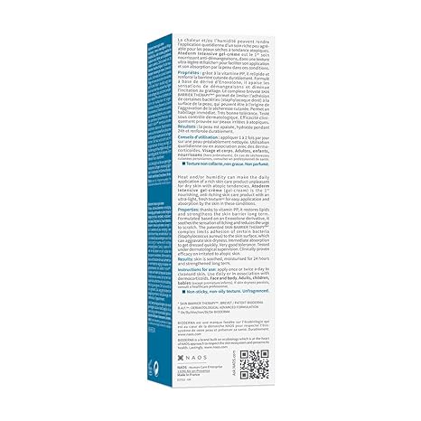 It quickly and durably soothes itching sensations and reduces the urge to scratch thanks to the Enoxolone derivative. The hydro-absorbent technology retains the surrounding water in order to optimize the hydration of the skin and reinforce its barrier function. It thus makes it possible to limit the sensations of itching and therefore irritation. Thanks to vitamin PP, Atoderm Intensive gel-cream replenishes lipids and strengthens the skin barrier durably. The patented SKIN BARRIER THERAPY complex limits the adhesion of certain bacteria (staphylococcus aureus) to the surface of the skin, which can be the cause of the aggravation of skin dryness.
