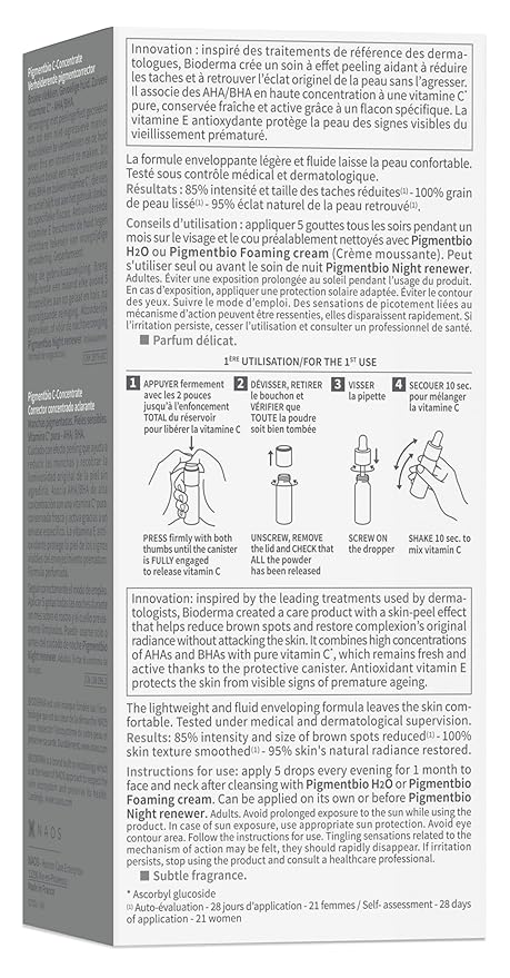 Bioderma has developed LumiReveal Technology to work effectively and durably on the 3 biological stages that cause hyperpigmentation: Inflammation: Glabridin reduces inflammation, which causes an overproduction of melanin; Production: the association of Andrographolide and Azelaic acid limit melanin production; Elimination: Epidermactiv boosts cellular renewal by eliminating cells filled with melanin Formulated with Vitamin C+ Vitamin E to Boost Brightening Action & Protect the Skin from Visible signs of Premature Ageing Formulated with Niacinamide to Provide long-lasting hydration & improve skin barrier resistance.