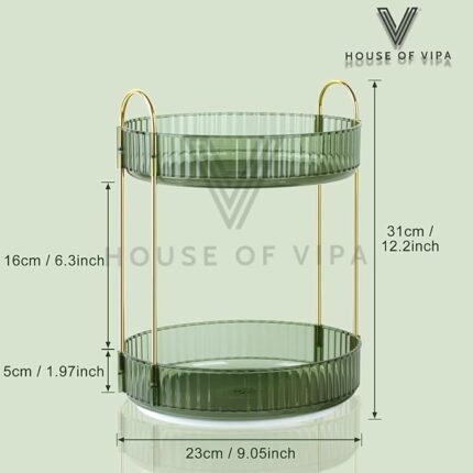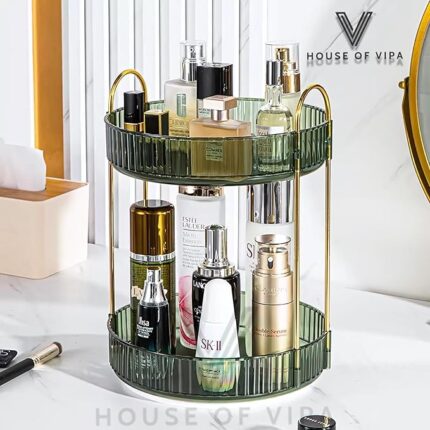360° Rotating Makeup Organizer Box – Cosmetic Storage with Drawers, Plastic Makeup Holder Stand for Dressing Table, Lipsticks, Nail Polishes & Accessories (Gem Green, 2 Layer)