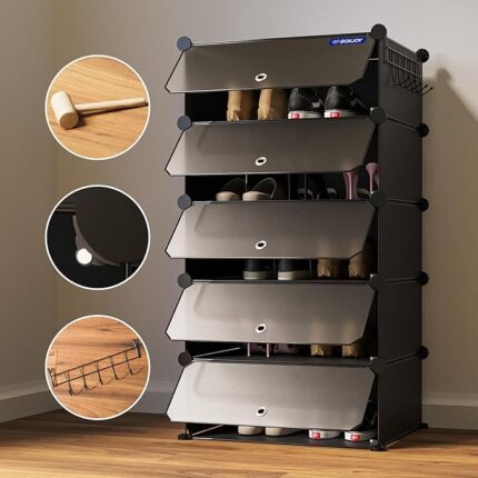SPACIOUS & ORGANIZED SHOE RACK FOR HOME: This BOXJOY DIY Plastic Shoe Stand is a 5-tier storage solution that can