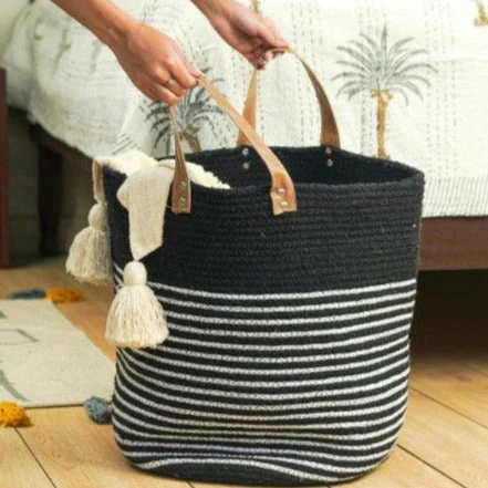 Black Jute Cotton Storage Basket | 10 Inches $175.00