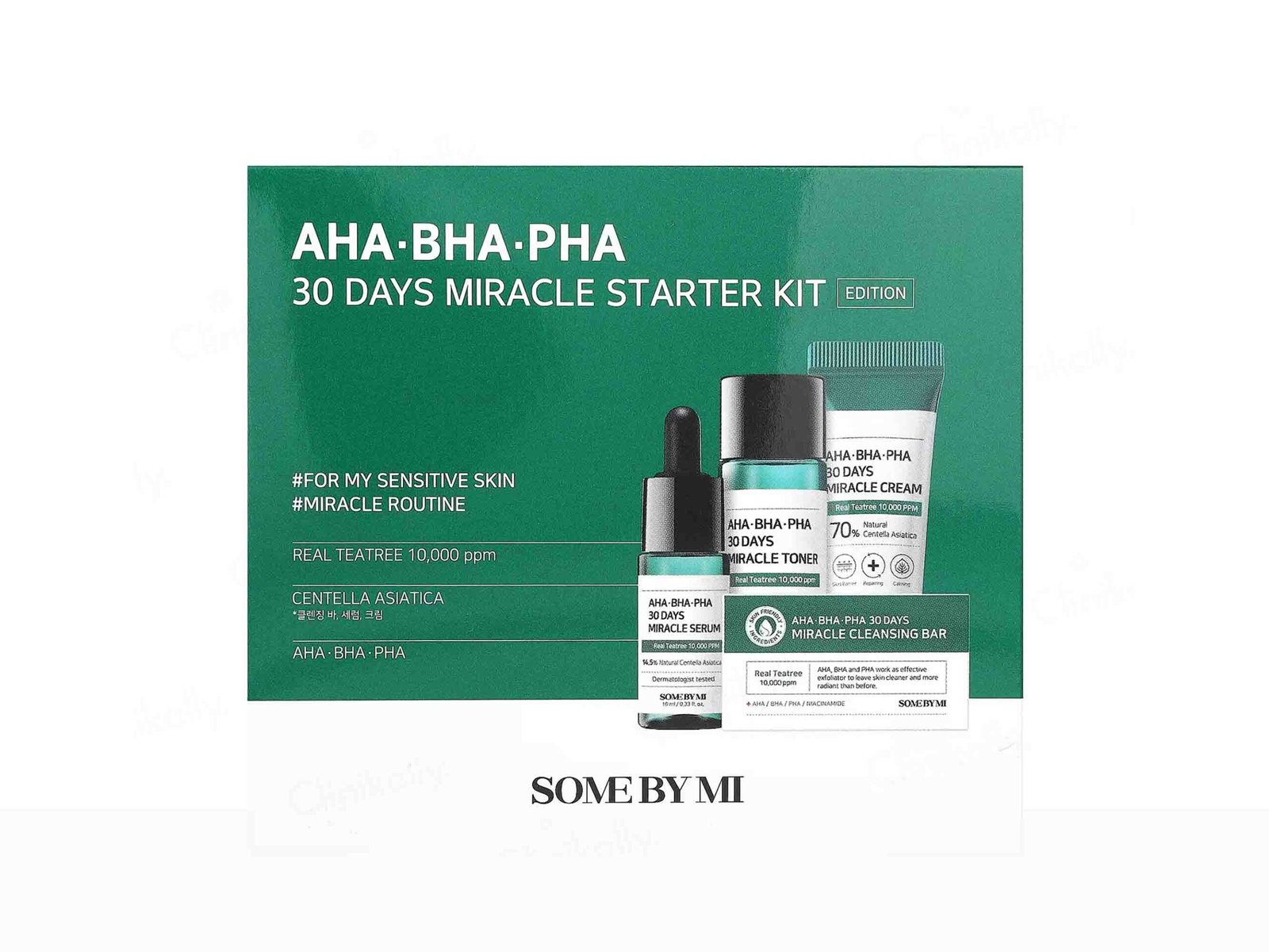 SOME BY MI AHA-BHA-PHA 30 Days Miracle Starter Kit includes cleanser, toner, serum & cream with tea tree and exfoliating acids for clear, smooth, acne-free skin.