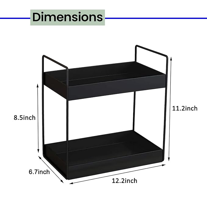 • Optimal Size: Measuring at 12.2×6.7×11.2 inches, there’s plenty of space between the tiers (8.3 inches) to store your items. The bottom level is tall enough to hold taller items without any trouble.