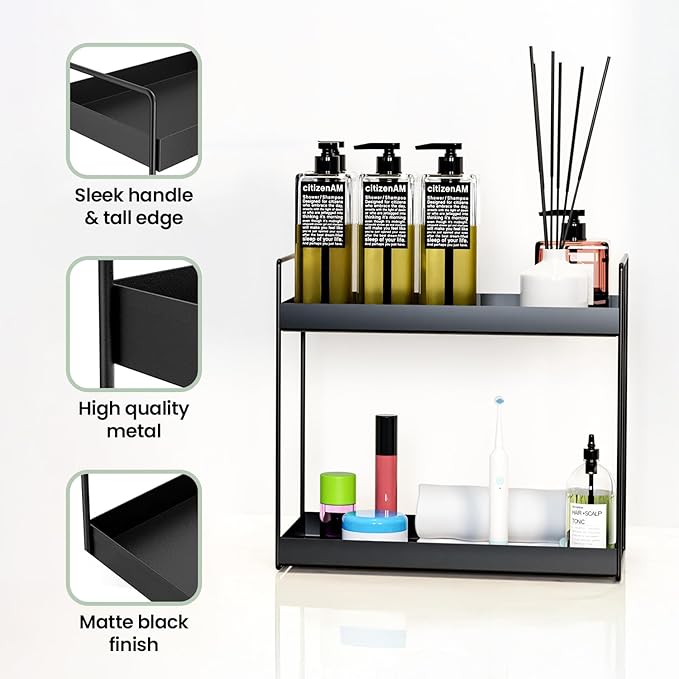 • Durable Construction: Made from strong GI Steel, this bathroom countertop organizer is rust-proof and built to last. The solid base ensures a stable hold for all your items.